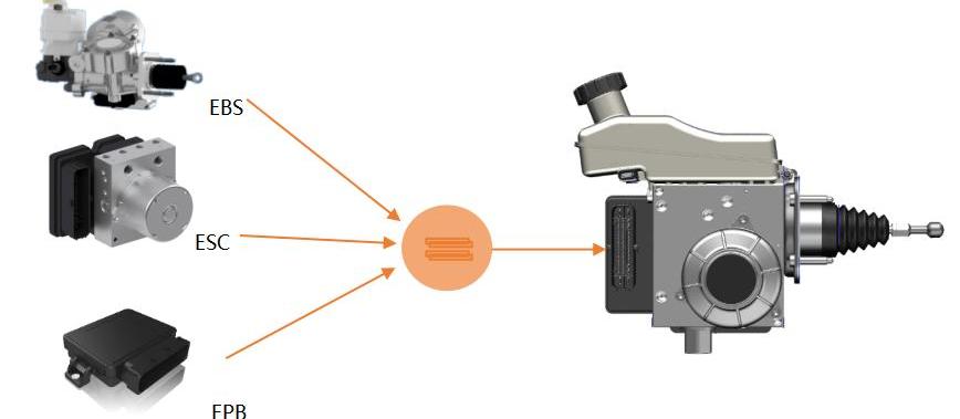 该产品采用液压解耦线控制动模式,集自动驾驶需求和能量回收功能于一体。不仅可以替代EBS+ESC的组合产品,还可以通过与冗余制动单元产品的匹配,覆盖L3+以上的自动驾驶需求。