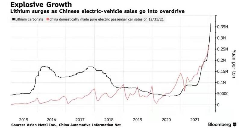 例如,根据电池原材料咨询公司Benchmark Mineral Intelligence的数据,如果锂的现货价格……按照中国市场目前的平均水平,生产一辆新电动汽车的成本可能会增加约1000美元。