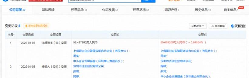盖世汽车刚刚在天眼查上发现,1月5日,上海灵念科技有限公司投资方发生变更,广西腾讯创业投资有限公司成为新的投资方,原公司注册资本增加至59.69万元。
