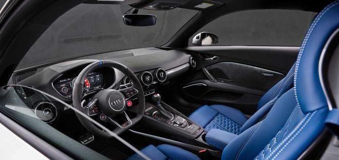 奥迪TT RS(参数图片)传承版限量版延续了现款车型的外观和内饰设计,并特别推出了5种外观和内饰配色,标配20英寸磨砂轮毂、铝制后视镜装饰、黑色运动排气等装备。此外,新车还在显著位置标注了2.5T L5发动机的点火顺序和quattro标志。
