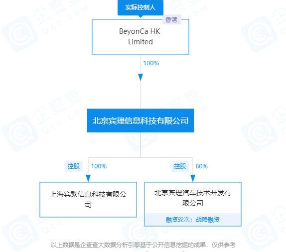 汽车先知根据企业调查了解到,北京李滨信息技术有限公司第一大股东为BeyonCa HK Limited,持股比例为100%,认购金额为2亿美元。