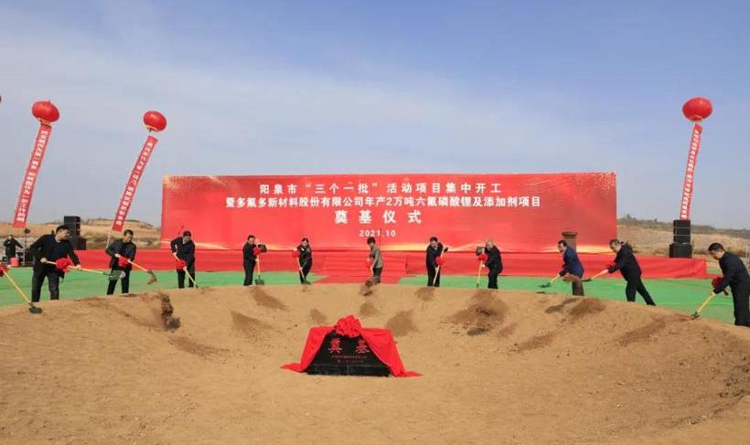 多氟多(002407)发布的消息显示,10月30日,阳泉高新区新材料产业园多氟多年产2万吨六氟磷酸锂及添加剂项目举行奠基仪式。
