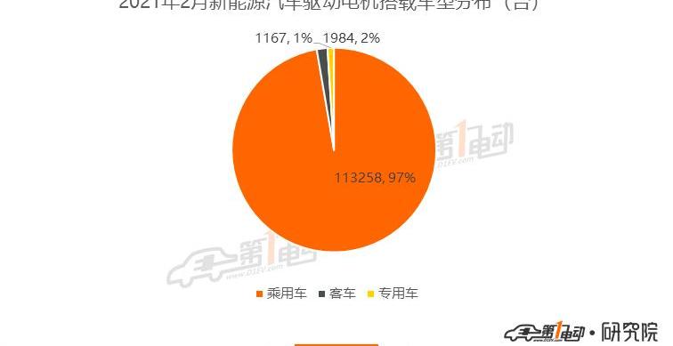 2月份,专用汽车领域共配备电机1167台,环比下降42.9%。方正电机和汇川联合动力是2月份该细分市场仅有的产能超过100辆的企业,占专用车总配套产能的19.5%。据第一电气研究院统计,2021年2月,新能源汽车驱动电机安装量达到116409台,环比下降33.1%。但去年同期受疫情影响,新能源汽车驱动电机装机量大幅下降,因此同比激增795.4%。