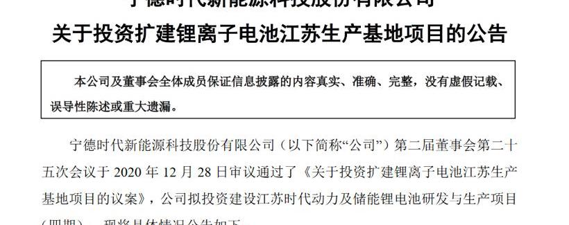 图片来源:东方财富网与此同时,CICC将当代安培科技有限公司今明两年的盈利预期分别上调4%和10%,至54.7亿元和80.3亿元。财报数据显示,今年前三季度,当代安培科技股份有限公司实现营业收入315.22亿元,同比下降4.06%;实现净利润33.57亿元,同比下降3.10%;其中,第三季度净利润14.2亿元,同比增长4.24%。12月29日晚间,国内锂电龙头企业当代安普科技股份有限公司新能源科技股份有限公司(以下简称“当代安普科技股份有限”,300750)连续发布三则公告,宣布将投资江苏时代动力及储能锂电池R&D及生产项目(四期)、宜宾动力电池制造基地项目、福鼎锂离子电池生产基地项目,总投资不超过390亿元,全部由企业自筹资金。公告显示,当代安培科技股份有限公司拟在江苏省溧阳市中关村高新区投资江苏时代动力与储能锂电池(四期)开发生产项目,总投资不超过120亿元人民币;拟投资扩建四川省宜宾市临港经济技术开发区动力电池宜宾制造基地项目,总投资不超过100亿元人民币;拟在福建省宁德市福鼎市投资建设锂离子电池福鼎生产基地,总投资不超过170亿元人民币。