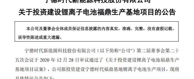 图片来源:当代安培科技股份有限公司公告截图福鼎锂离子电池生产基地分两期建设。一期工程从开工算起不超过26个月,二期工程计划在一期后两年内开工。项目总占地约2300亩,其中一期占地约1500亩,二期占地约800亩。对于本次大额投资,当代安培科技股份有限公司表示,公司建设生产基地符合公司战略发展规划,将进一步完善公司产能布局,满足公司未来业务发展和市场拓展的需要,对促进公司长期稳定发展具有重要意义。上述项目的投资建设将增加公司的资本支出和现金支出,但长期来看,将对公司的业务布局和经营业绩产生积极影响,符合公司全体股东的利益。今年2月,当代安培科技股份有限公司公告称,本次拟非公开发行股票募集资金不超过200亿元,扣除发行费用后全部用于当代安培科技股份有限公司湖西锂离子电池扩产项目、江苏时代动力与储能锂离子电池R&D及生产项目(三期)、四川时代动力电池项目一期、电化学储能前沿技术储备R&D项目及补充流动资金。鉴于当代安培科技股份有限公司未来几年产能有望全面提升,CICC 12月30日大幅上调当代安培科技股份有限公司目标价50%。据CICC介绍,当代安培科技有限公司计划投资不超过390亿元建设锂电池产能,预计未来2-4年总新增产能约120-150GWH。考虑到短期行业景气加速,中长期预期全面提升,将当代安普科技股份有限公司目标价上调50%至450元人民币。这一目标价比当代安培科技有限公司12月29日的收盘价高出46%以上,当时当代安培科技有限公司的股价收于308元。截至发稿时,当代安培科技股份有限公司股价上涨6.66%,至328.5元。