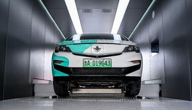 吉利科技集团智能换电站运营着一辆带换电的新能源汽车。