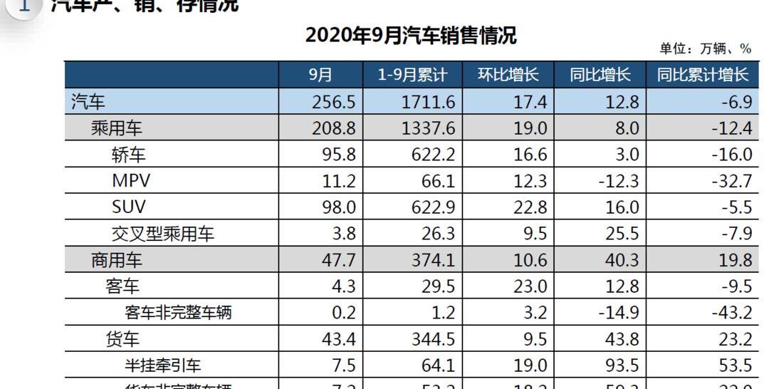 10月13日,中汽协召开网上月度信息发布会,发布2020年9月汽车行业产销情况。2020年9月,汽车市场进入传统旺季,产销双双突破250万辆,创年内新高,环比和同比均呈现快速增长。9月份,汽车产销分别完成252.4万辆和256.5万辆,环比增长19.1%和17.4%,同比增长14.1%和12.9%。