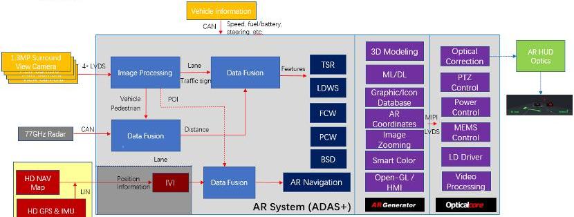 端到端解决方案,该公司提供AR-HUD系统集成和可以灵活连接地图和服务数据的SDK,并提供用户友好的界面,集成GPS、摄像头、传感器、毫米波雷达、激光雷达和其他ADAS传感设备。车企只有将其整合到汽车系统中,才能实现安全导航、安全驾驶、路口提醒的需求。