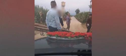 视频内容发生在8月30日,陕西咸阳一对夫妇的婚车在行驶途中,几名村民堵住道路索要奖品。