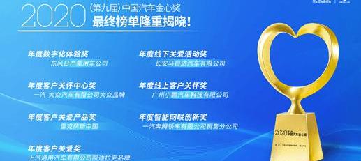 在评选过程中,主办方再次细化了四大体系。数字体验的选择维度包括电商平台及运营、移动互联网平台(APP/微信/小程序)、线上体验平台、线下场景数字化;客户关怀的选择维度包括线上关怀平台、客户关怀/客户服务中心、线下关怀活动和客户关怀产品;智能互联的评选维度包括车辆互联平台、智能互联系统、移动终端应用和前瞻性技术创新;车友组织的评价维度包括品牌车友会、车友公益活动、会员组织运营、车友口碑营销。“2020(第九届)中国汽车金心奖评选”于4月正式启动。主办方经过征集候选品牌、车主投票、网友投票、读者投票、计票和评委投票等环节,根据综合投票结果和行业专业人士的意见建议,最终评选出“2020(第九届)中国汽车金心奖”年度榜单。在本次评选中,7家国内知名车企和品牌获得荣誉: