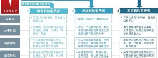 “对症下药”为用户提供差异化价值。在品牌、营销、产品力、价格等因素的影响下,Model 3形成了三种差异显著的典型用户:极客粉丝消费者、年轻的首次购买者、家庭增量购买者。特斯拉的营销和产品定位思路非常清晰,根据不同用户的特点,精准高效地为用户提供差异化的价值。