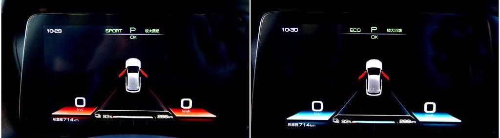 ECO模式带给你冷静理性的驾驶氛围,SPORT模式可以为你的小脾气提供动力支持,仪表盘的底色会时刻提醒你脚下该怎么动。
