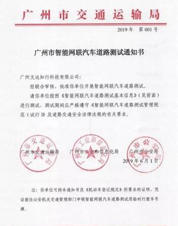 近日,文远智行威瑞德收到广州市政府相关部门下发的20份路测通知,成为首批获得广州智能网联汽车路测资质的企业。