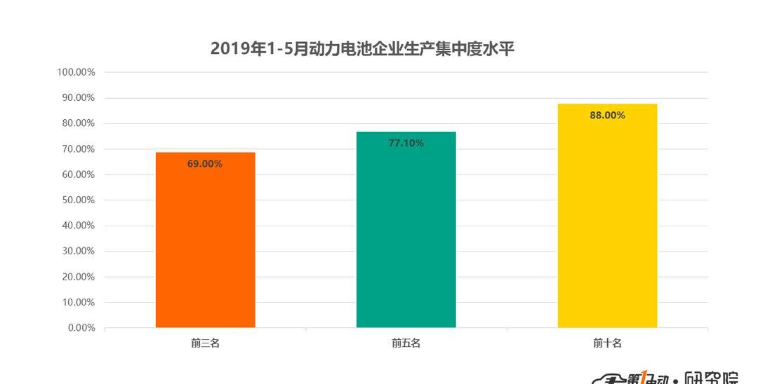 从产能集中度来看,1-5月,我国动力电池行业前三家企业共生产25.6GWh,占比69%;前五大企业共生产28.6GWh,占比77.1%;前十家企业共生产32.6GWh,占比88%,产能集中度保持较高水平。