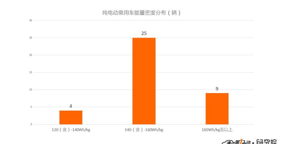 根据2018年的补贴政策,纯电动乘用车动力电池系统的质量和能量密度不低于105Wh/kg,105-120Wh/kg的车辆补贴0.6倍,120-140Wh/kg的车辆补贴1倍,140-160Wh/kg的汽车补贴1.1倍。从电池系统的能量密度来看,本目录中有4辆汽车获得1倍补贴,25辆汽车获得1.1倍补贴,9辆汽车获得1.2倍补贴。