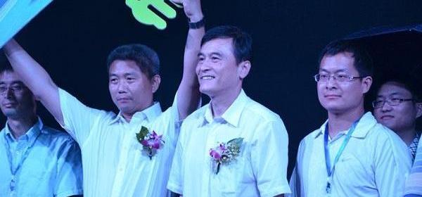 在北京举行的江淮iEV4上市仪式上,安进(左三)将钥匙交给车主。