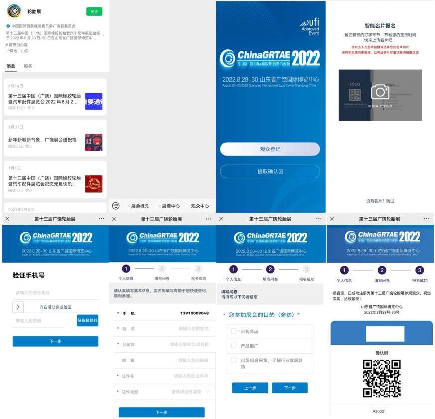 近日,从广饶轮胎展组委会获悉,第十三届轮胎展将于2022年8月28日至30日在山东广饶国际博览中心如期举行。展览占地4.8万平方米,参展企业750家,预计观众10万人。作为中国大型、专业、具有国际影响力的专业展会,备受业界和市场的期待!为了提供一个安全、健康、安心的展览环境,根据国务院联合防控机制和新冠肺炎在展览业防控指南的要求,所有进入展览场所的人员必须在实名制下登记,并正式宣布注册二维码、公众号和官网。二维码注册流程