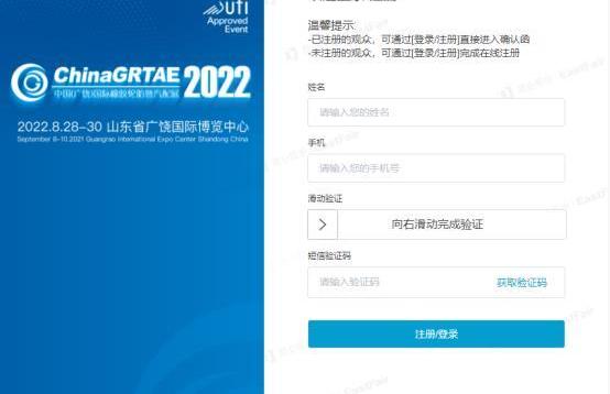 步骤1。关注官方微信公众号,识别认证主体为2。单击右下角进行注册。第二步:拍张照片或上传一张名片。如果没有名片,请单击下面填写第三步。输入手机接收到的信息即可完成验证。第4步:单击“下一步”。填写和。成功报告名称后,将自动生成该名称。使用此确认码更改入场卡。3、 轮胎展览会官网注册流程http://www.chinagrtae.com/进入注册页面