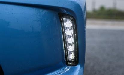 钻石型LED大灯设计时尚大气,大灯内部加入了独特的蓝色元素。照明后的效果相当不错。同时,垂直排列的矩阵式LED日间行车灯也相当精致。
