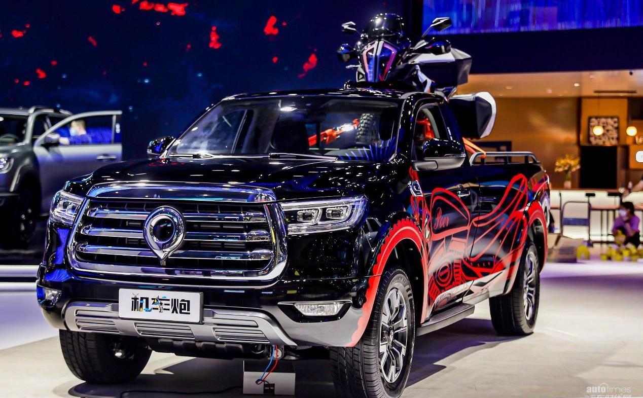 长城全尺寸皮卡和中国首款超级跑车皮卡概念车也于今年首次亮相。作为时尚商业类别的新成员,全球时尚商业皮卡钻石炮在广州车展上首次亮相,助力行业升级、拓展新业态、共同创新商业。