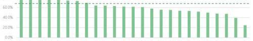 该图显示了不同类型行业中直流公共桩的比例汇总。在利用水平上,尽管数据显示充电桩设施极其丰富,但实际利用率很低。只有9个城市的平均利用率超过40%。其中,太原最大的城市达到64.0%,深圳最小的城市只有14.2%。从桩利用率的频率分布来看,每个城市平均桩利用率低于20%的公共桩位平均比例超过60%。大多数城市的公共桩日均周转率相对较低,每桩服务车辆不到2辆