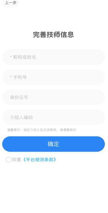 易修邦APP共享者注册界面3。技师汽修技师可以注册为易修邦汽修技师,并通过易修邦平台免费获取共享方提供的闲置工作站和设备信息。在平台上获得联系方式后,他们可以自己与共享者讨论租金、使用时间等。在离线完成交易后,他们可以评估影响平台上共享者的信用水平。用法:下载EasyRepair应用程序/安装注册/填写注册信息/选择介绍人/电话联系使用共享工作站