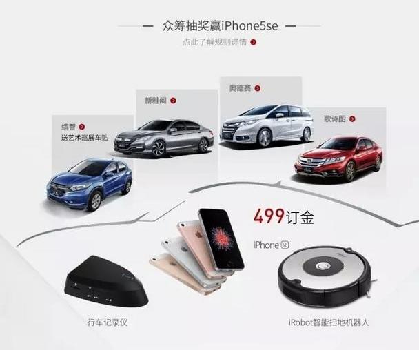 存款499元的新款雅阁、Pizzy、奥德赛和宋诗图车型在订购后可以参加众筹抽奖。