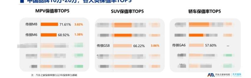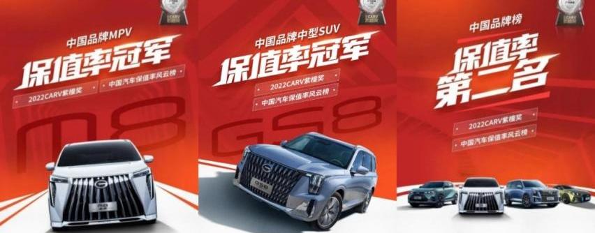 在联合汽车之家研究院每天发布的“2022中国汽车保值率排行榜”中,传祺M8和传祺M6分别以71.61%和68.92%的三年保值率获得榜单的第一名和第二名,传祺品牌也跻身自主品牌前五;在最近发布的易车超级评价系统年度热门汽车保养率榜单中,传祺M8也以77.64%的成绩荣登自主品牌汽车保养率榜首。
