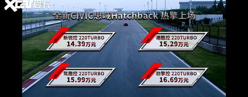 7月27日,东风本田思域掀背车(参数|询价)正式上市,售价区间为1439-16.69万元。新车的造型与海外版基本相同。与三厢版相比,思域(参数|询价)掀背车更接近高性能版思域TYPE R的造型。东风本田思域掀背车官方指导价车型价格220 TURBO手动驾驶乐趣控制15.99220 TURBO CVT新锐控制14.39220 TURBO CVT潮酷控制15.29200 TURBO无级变速器金清控制16.69 ECKA.com制表www.xcar.com.cn