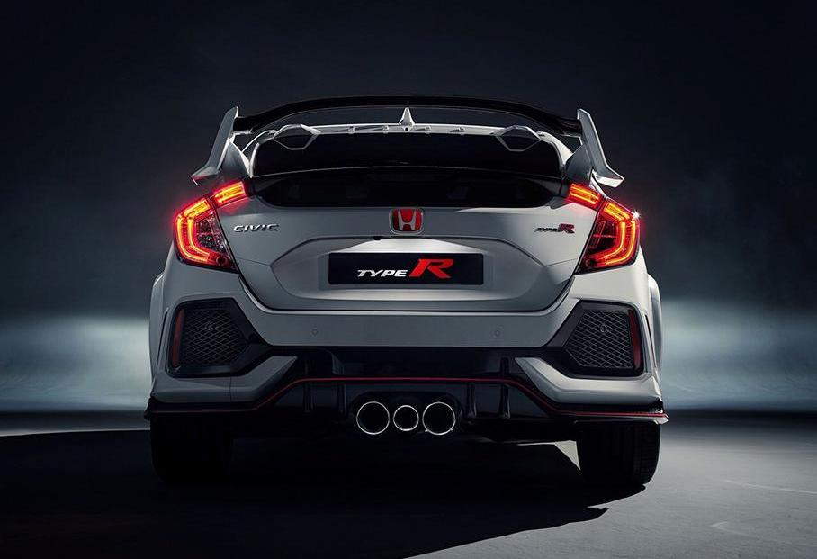 新一代思域Type R采用了宽体设计,在提高整车空气动力学性能的同时,也增加了车身的饱满度。车尾采用了夸张的双段式扰流板设计。除了后扰流板,后挡风玻璃上还出现了两个小扰流板,而排气系统仍然是中置三向设计。