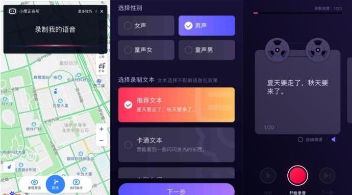 今年11月前夕,百度地图正式发布了全球首款地图语音定制产品。用户只需打开百度地图应用程序,记录20句话,等待约20分钟即可生成自己的地图语音包。语音包不仅可以在导航时使用,还可以在景区智能语音引导、智能语音交互等场景中使用。人性化的语音定制让每个人都能真正享受百度地图黑科技给生活带来的小惊喜。如今,超过100万用户录制了自己的专属语音包,让超越时间和空间的独特声音温暖并陪伴着亲人。