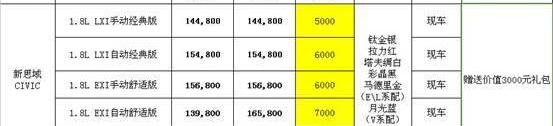 1、 购买东风本田新款思域,最高可享受1万元现金优惠