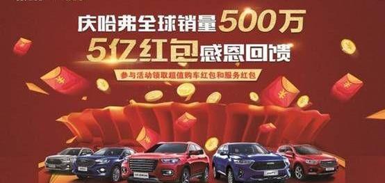 为了提升你的命运价值,哈弗推出了“庆祝哈弗全球销量500万,5亿红包感恩回馈”活动。从现在到2月28日,哈弗为用户提供了价值1000元、2000元、3000元、4000元和4999元不等的购车红包,包括维修券、保费券、延期/保险券和其他服务红包,总金额高达5亿元。