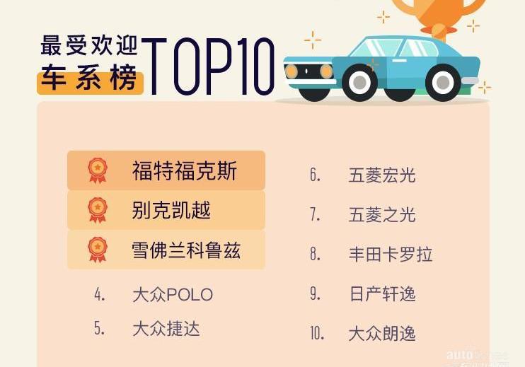 在本季度最受欢迎的品牌排行榜中,“亲民”系列再次占据榜首,德国大众、美国别克和日本本田锁定前三,这与上一季度最受喜爱的车系“国别排行榜”基本一致。据分析,前三名不仅在新车领域表现突出,而且由于产品类型多样、品牌知名度高、产品性能优异,在二级流通市场也颇受欢迎。值得一提的是,在一众富裕品牌中脱颖而出的五菱和比亚迪为国产品牌挽回了面子,分别位列榜单第九和第十位。汽车系列榜单一直是竞争最激烈、用户评价最高的。根据人人汽车第三季度的销售数据,紧凑型汽车仍然更受欢迎,福特福克斯占据了C位,并以绝对领先优势荣登“最受欢迎汽车系列”榜首。别克凯悦、雪佛兰科鲁兹、大众POLO和大众捷达分列第二至第五位。纵观这份榜单,前十大车系中的每一个都有很高的出镜率,使其成为真正的“通勤车”,并再次被验证为“赢得中端市场的人赢得世界”。