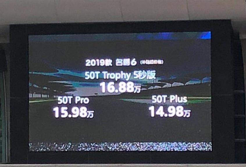 2019年4月27日,2019款名爵6(参数|询价)正式上市,售价区间为928-14.48万元,新能源汽车售价区间为14.98-16.88元。新车进一步强化了其运动属性,最明显的变化是Trophy版本配备了以战斗为灵感的烟熏运动套件,使整体外观非常霸气,并在一定程度上基于性能。此外,新车提供燃油和新能源车型供消费者选择,新能源车型0-100km/h的加速时间仅为5.9s。