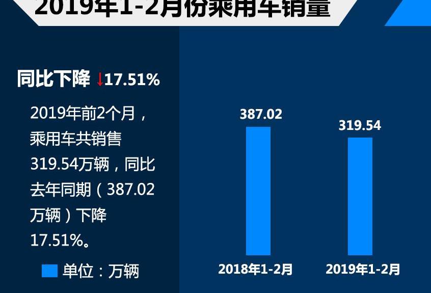 与今年的汽车市场形成鲜明对比的是,今年的暖空气比往常来得更早。在2018年经历了28年来汽车市场的首次负增长后,市场的寒意一直持续到今年前两个月。中国汽车协会发布的数据显示,2019年2月,乘用车累计销售119.81万辆,较1月下降39.66%,较去年2月下降17.35%。今年2月,受春节假期影响,乘用车销量同比大幅下降。因此,本文将今年前两个月的销售额与2018年前两个月中的销售额进行比较,以便更宏观、更全面地反映销售数据。根据中国汽车协会的数据,今年前两个月,乘用车销量同比下降17.51%。其中,轿车同比下降14.68%,SUV车型同比下降18.64%,MPV车型同比下降22.11%。轿车、SUV和MPV都出现了明显的下滑。