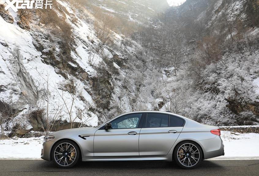 M5车身侧面与华晨宝马5系加长版最大的区别在于更紧凑的车身长度,这是宽车身设计实现的前翼子板的鲨鱼鳃。这也是M族的一个共同特征。此外,前后两双20英寸的“薄底快靴”,以及内部填充的制动盘和金色M卡钳,也在细节上突出了它的“杀手”本色。