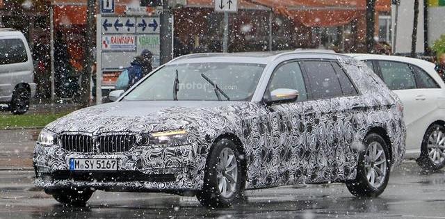 近日,媒体再次曝光了新款宝马5系(参数|询价)旅行版的测试谍照。这款新车是在一个新的平台上制造的,预计将于2017年发布。提示:宝马新的5系旅行车是一款豪华中大型旅行车,与梅赛德斯E级(参数|询价)旅行车直接竞争。根据此前的消息,新一代5系有望在今年的巴黎车展上正式发布。从谍照来看,新款5系旅行车的整体车身线条流畅、稳定、优雅。新车的前脸采用了新的7系设计风格,但总体上看起来也更年轻时尚。与普通的三厢车型相比,旅行车较大的后备箱空间也让整车充满了家庭氛围。