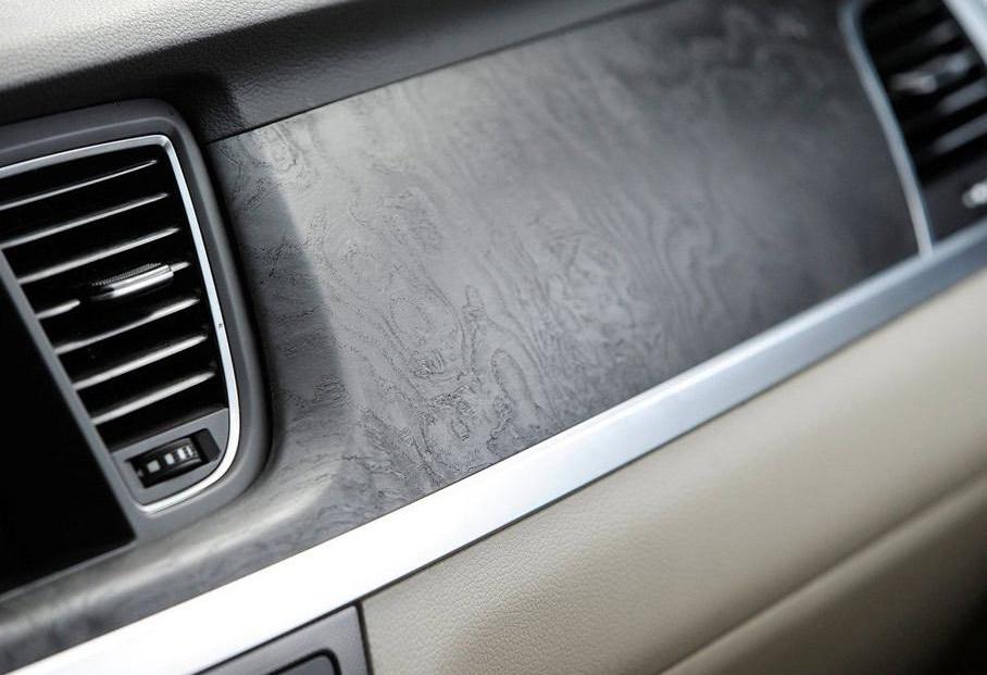 当你来到汽车内部时,感觉非常平静和大气。这款G80车型的中控台采用了特殊的木纹装饰,为浅灰色,看起来质感不错。此外,该车配备了真皮包裹的四辐方向盘,空调出风口和各种操作旋钮布局合理。