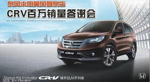 激动人心的消息!!!!中国唯一一款销量破百万的汽车即将诞生!东风本田CRV即将完成百万销量的壮举!!达到一百万是第一个历史时刻!!这也是一个深度积累和深度发展的新起点。为了让每一位用户都能分享东风本田的喜悦和自豪,除了在产品和服务质量上精益求精,还推出了一些温馨的反馈活动。黄冈东风本田4S店及其全系列车型举行了一次大型答谢会,以回馈黄冈地区的新老客户。让我们5月25日在黄冈东风本田4S店见面!!欢迎新老客户光临!!从现在起,通过互联网或电话预约订购特别版的感谢大会。绝地武士将享受9800元的现金折扣。你还在犹豫什么?快拿起电话!!!寻找在线销售顾问孙源、吕梅和郭密凤的购车者,再送3000元在线销售精品礼包,电话限前10名,名额有限,订单优先!!!以上优惠仅针对网络销售客户,非网络销售客户无法享受!更多惊喜可以在黄冈东风本田身上找到。详情请咨询黄冈东风本田网上销售购车热线:0713-8810777 24小时热线:15387191668。