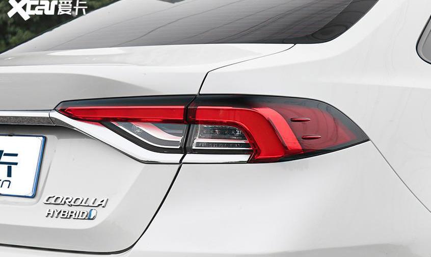 卡罗拉双擎的尾部线条凹凸有致,层次分明。镀铬装饰条贯穿尾部,与两侧尾灯相连,延长了视觉宽度。行李箱的上边缘略微向上倾斜,形成一个小鸭尾,为卡罗拉双擎增添了运动气息。