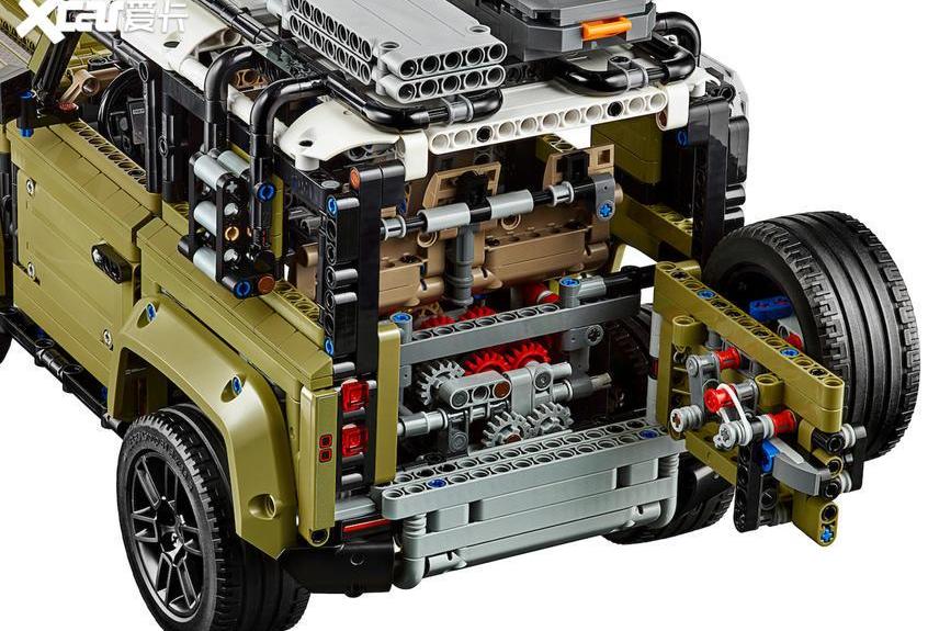 全新路虎卫士采用了非常坚固的宽体轮拱设计、行李箱中的侧门开口设计和全尺寸备胎,42110路虎卫士也恢复了该设计。经典的远征绿油漆搭配白色屋顶,细节让人非常熟悉。