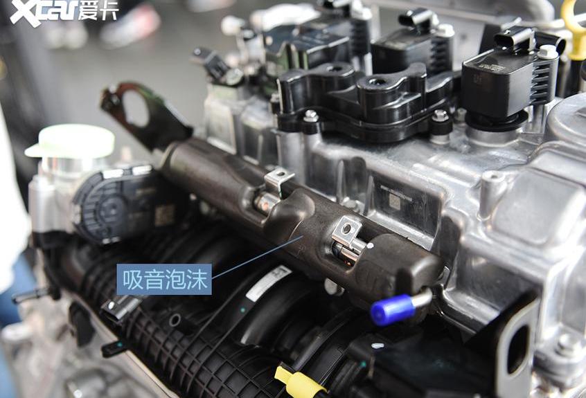 为了降低发动机噪音的传递,这款1.3T发动机在许多细节上都进行了特殊处理,例如燃油导轨外侧覆盖了聚氨酯吸音罩。此外,由于这款发动机使用歧管喷射,缸内直喷发动机上的高压油泵可以更换为低压油泵,这也降低了油泵本身发出的噪音。