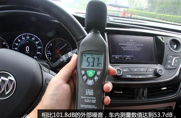 环节一:隔音测试:车内降噪对于制造商来说是对造车能力的一个不可避免的测试,也是衡量一个车型是否能提供足够舒适度的重要指标。与过去一样,我们仍然使用在距离别克昂科威汽车侧面一米的地方设置人工噪音的方法来测试静态车辆隔音。通过测试可以看出,前发动机罩等优点后行李箱的隔音棉和车门的双层密封条等细节都经过了处理。与101.8 dB的外部噪声相比,车内的测量值达到了53.7 dB,在同级别的车辆中已经相当不错了。