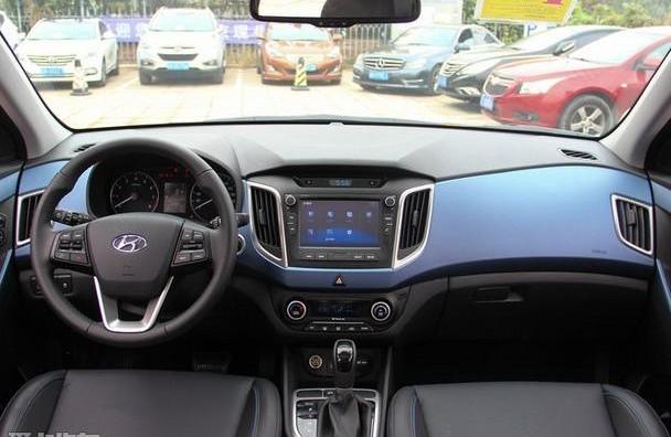 现代ix25在外观设计上与全新的sunda有点类似,使用家族六边形网格,中间有三条宽镀铬条。大灯造型锐利,采用透镜和LED日间行车灯。ix25车身线条硬朗,棱角分明。车身尺寸方面,ix25的长、宽、高依次为4270/1780/1627mm,轴距为2590mm。这种轴距长度在同级SUV中具有优势。内饰设计方面,ix25内饰的整体设计给人一种简洁沉稳的感觉。中控台采用了双色搭配,显得比较年轻。