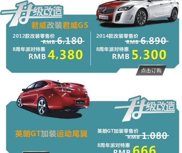 1、2012款君威GS周边都是在活动期间来店订购君威GS的车主。原价6180元,目前年度派对特惠价为4380元。