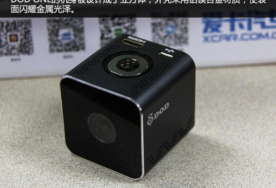 DOD ONE机身设计为立方体,外壳由铝镁合金制成,表面有金属光泽。DOD ONE的机身长、宽、高均为45mm,屏幕尺寸为1.5英寸,但足以清晰地看到前车的牌照。