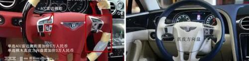 1) 高级真皮网状座椅(配置价格:15万,宾利中标6.0专享配置)、小桌子(配置价格4万)、后排娱乐(配置价格8万)、4座(配置价格10万)