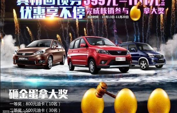 双11即将到来,与所有商店一起庆祝!昌河汽车网上商城专场活动于10月13日启动!伙计们,你们准备好了吗?开始抢购!