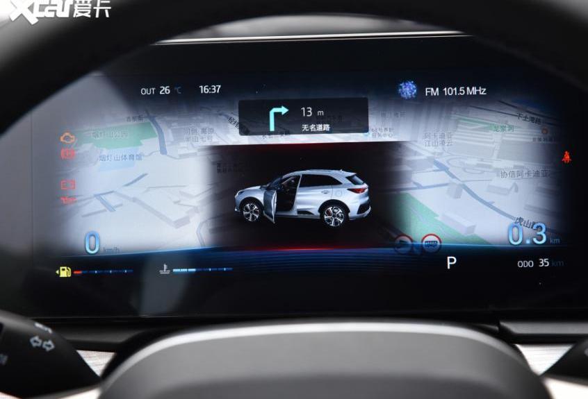 全液晶仪表板有三种主题模式:简洁、科技和运动,具有极高的显示清晰度。它配备了一个触摸屏投影功能,可以将导航直接投影到仪表板上,使驾驶员更容易查看。